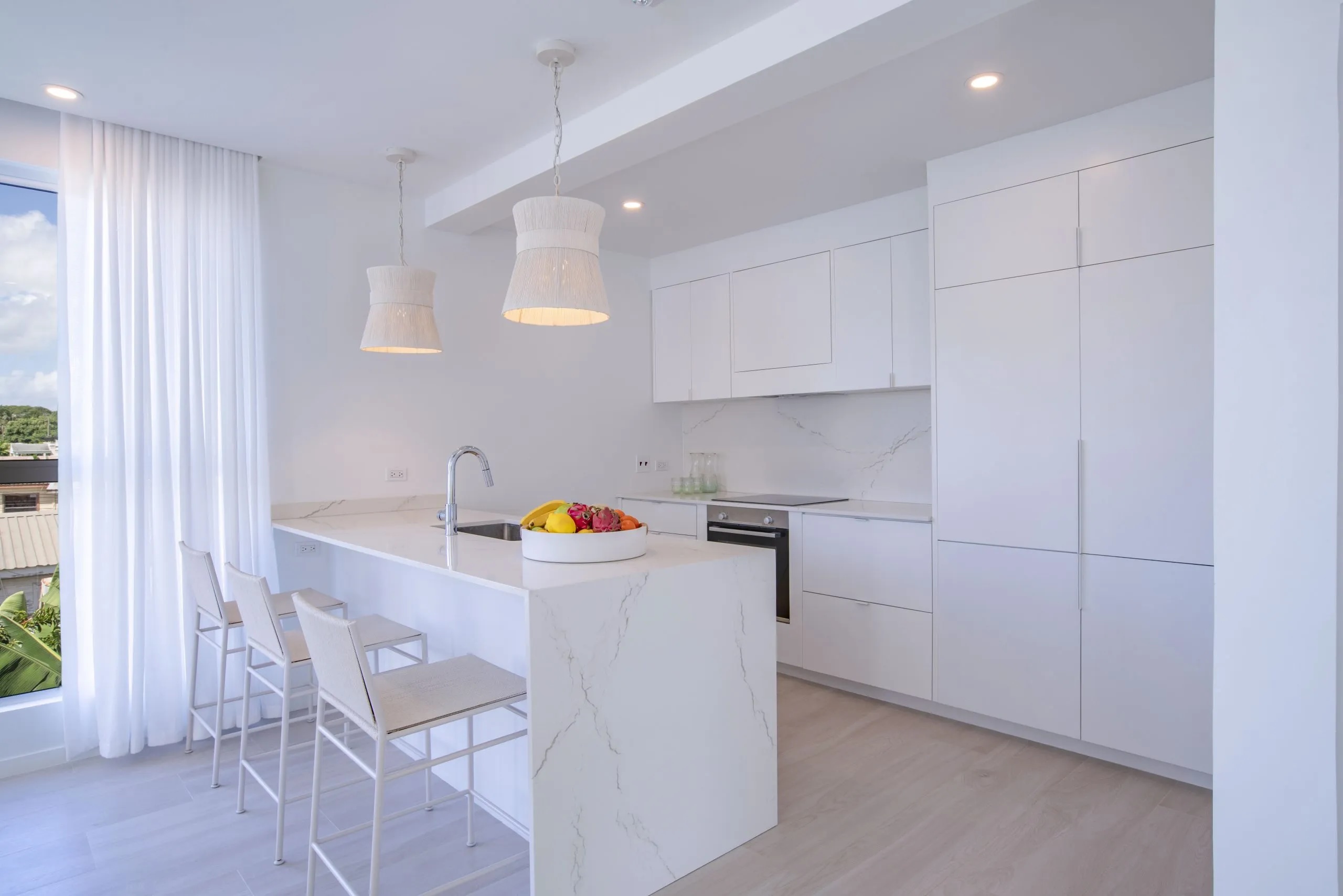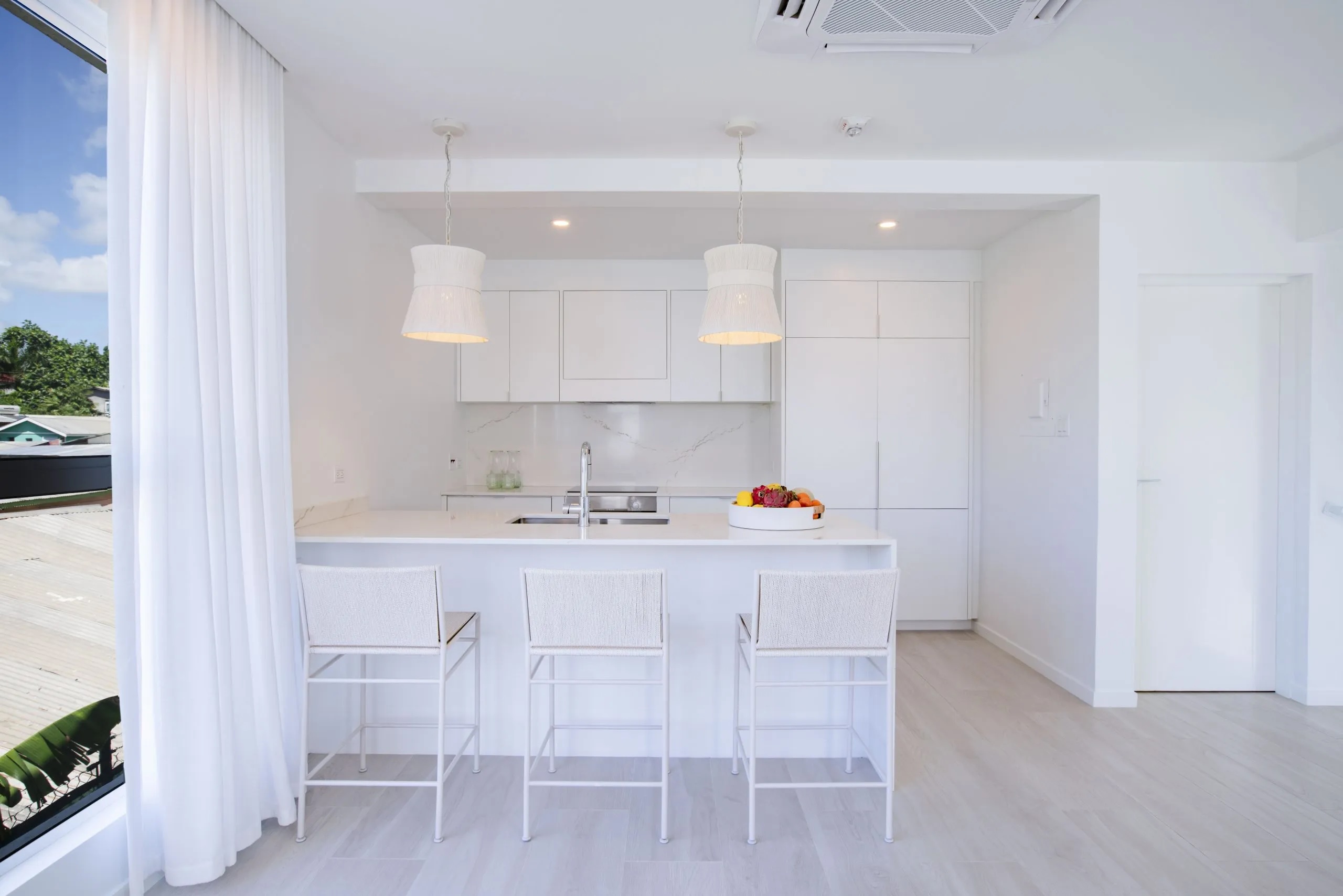 Palm Grove Unit 2 is a stunning 2-bedroom villa nestled in a prime location, offering breathtaking panoramic sea views from its rooftop terrace. This exclusive Condominium Hotel is designed to provide a seamless ownership experience and a promising return on investment. The townhouses are meticulously crafted with European finishes and boast spacious interiors that exceed all expectations. Upon entering, you are greeted by enchanting decorative lighting and large windows that frame the lush Caribbean landscape, setting a tranquil and inviting ambiance. The living room is adorned with exquisite decor, creating a serene retreat for relaxation and leisure. The master suite and guest bathroom are appointed with lavish features, including a double vanity and a walk-in shower with dual options in the master suite. The guest bathroom showcases a glass-paneled walk-in shower and a sophisticated white marble single vanity. The open-plan living area and kitchen offer an unparalleled experience, featuring handcrafted marble surfaces and fully integrated appliances. Adding to the allure is a private plunge pool with an outdoor lounge area, seamlessly integrated above the fully equipped kitchen and indoor dining space. The roof terrace is a true oasis, complete with a wet bar, sun loungers, and vibrant tropical greenery, offering a private sanctuary for relaxation. Privacy is assured with a pathway leading to the front door, providing a sense of seclusion and tranquility. The ground floor accommodates the bedrooms and a bathroom, while the first floor presents an open-plan living room, kitchen-dining area, and another bathroom. As an added bonus, residents have the choice of two Beach Clubs, one within walking distance and the other located in Speightstown, St. Peter. It's important to note that this unit is part of a rental pooled property and is currently under a 5-year rental pool agreement.